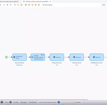 The MCP server acts as the bridge between the LLM and your business logic. It exposes Mendix microflows — pre-built backend workflows — as callable tools.